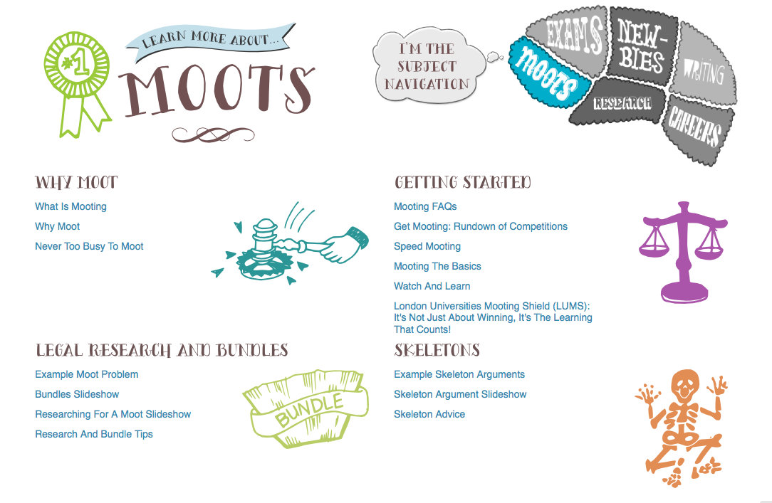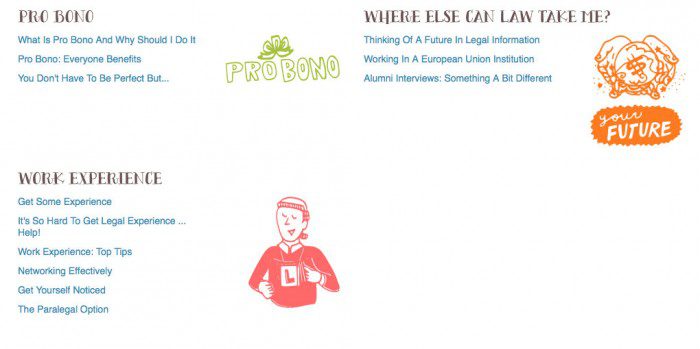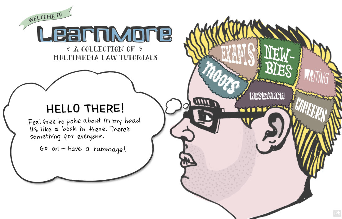 It contains lots of legal resources (think what a typical school’s law library would) along with FAQs for law students. But the real point — it’s full of drawings, cartoons, graphics, and a great sense of humor. See: