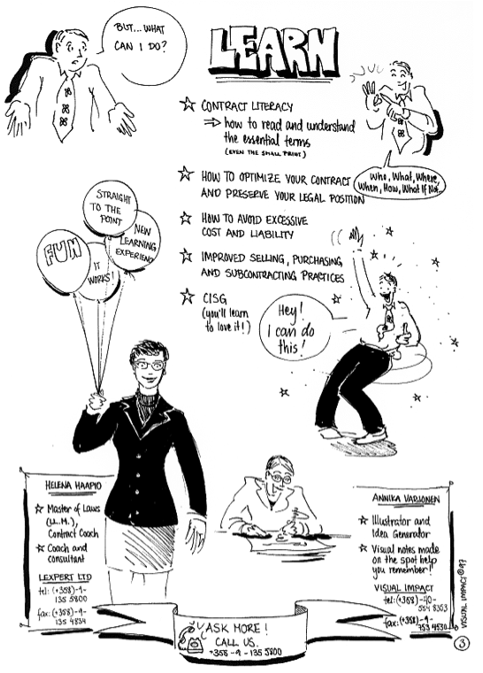 Annika Varjonen provides the text below, and lively images to illustrate how visuals could help with contract formation and other legal interactions. I agree with all of these points — and hope to collaborate with this awesome team! I see good things in the future of well-designed, beautifully communicated law.