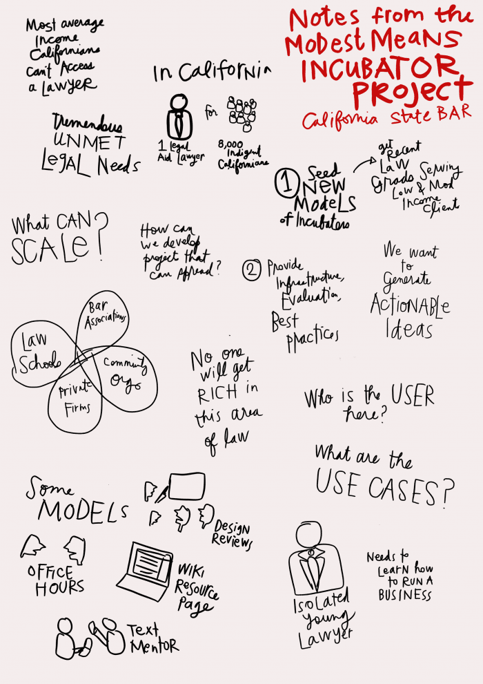 Last week I attended the presentation about Modest Means Incubators at the State Bar of California. There were judges, private lawyers, law school admins, legal service providers, and court staff there to talk about how new models of legal practices can be built.
