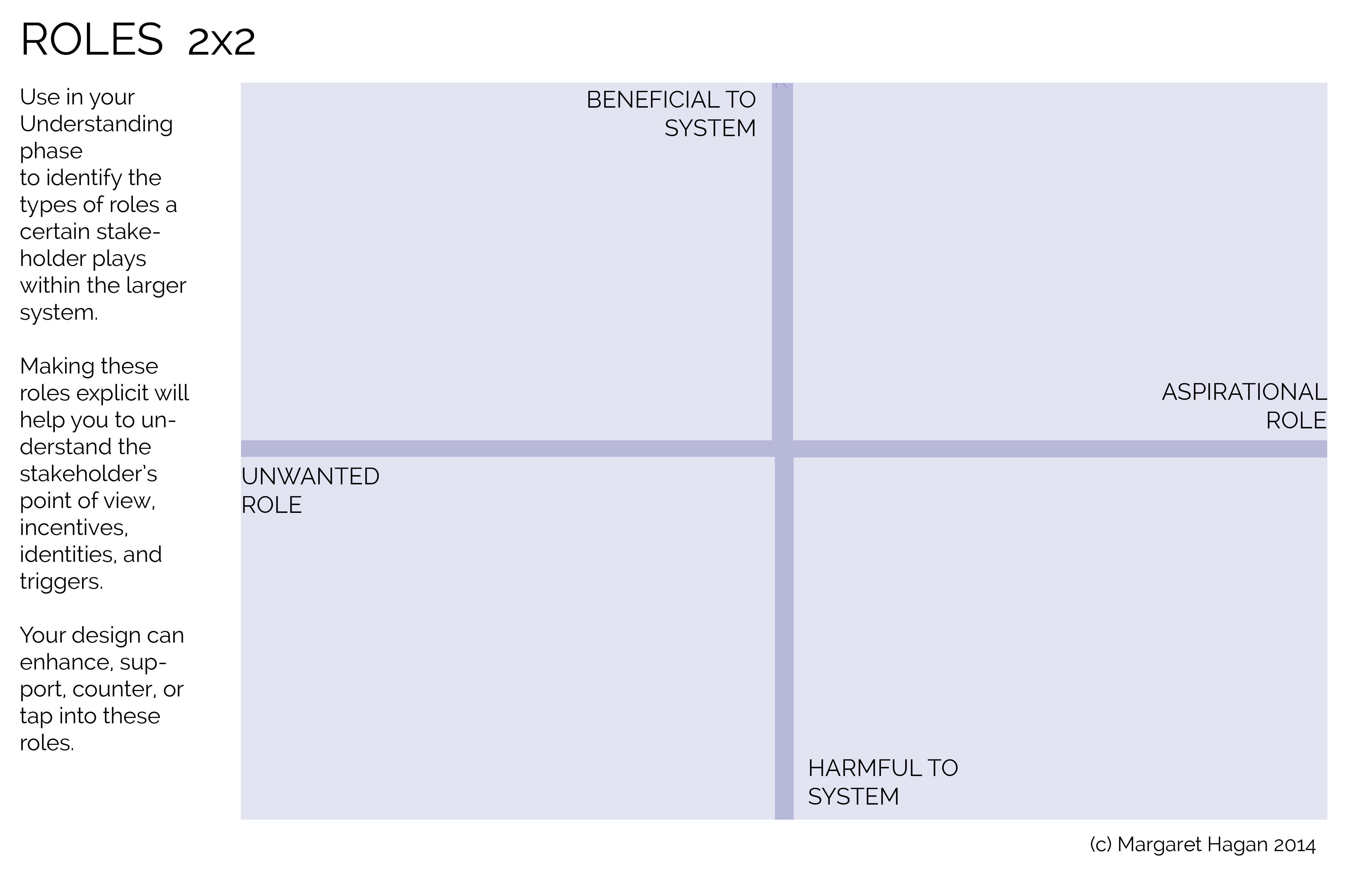 Some more props & tools that I’ve been using in system designs. These are good for synthesizing research & notes — and then focusing in on what exactly the “Design Brief” should be, guiding the problem you’re trying to tackle & identifying the opportunity moments, the frustration targets, the leverage points — a good place for design work to be targeting for maximum change.