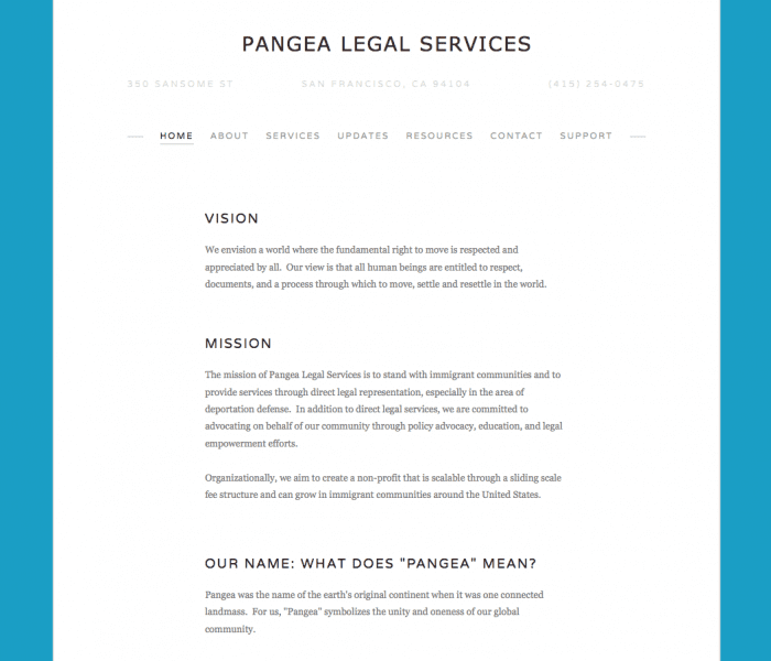 Pangea Legal Services is a San Francisco collective of lawyers who are working to support immigrants with legal support — through a low-bono and pro-bono model that provides services on a sliding scale of fees.