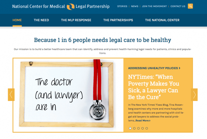 Such a partnership can take many forms: with lawyers physically stationed inside emergency rooms, clinics, or hospital wards — or with the medical organization having established a channel to lawyers, to funnel certain clients to them for consultations & help.
