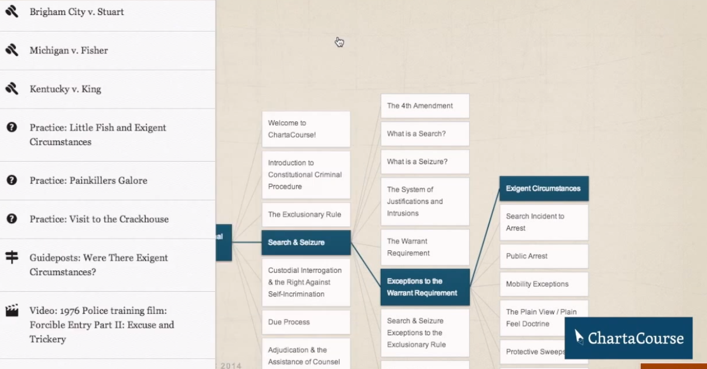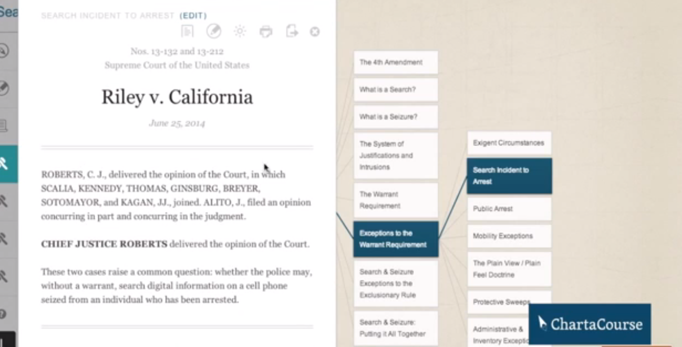 ChartaCourse is a new tool from law professors that unpacks case books, and lays out interactive, visual concept maps of each law course’s content. It’s meant to replace case books. Rather than buy a book, students pay a subscription to access the courses and content.