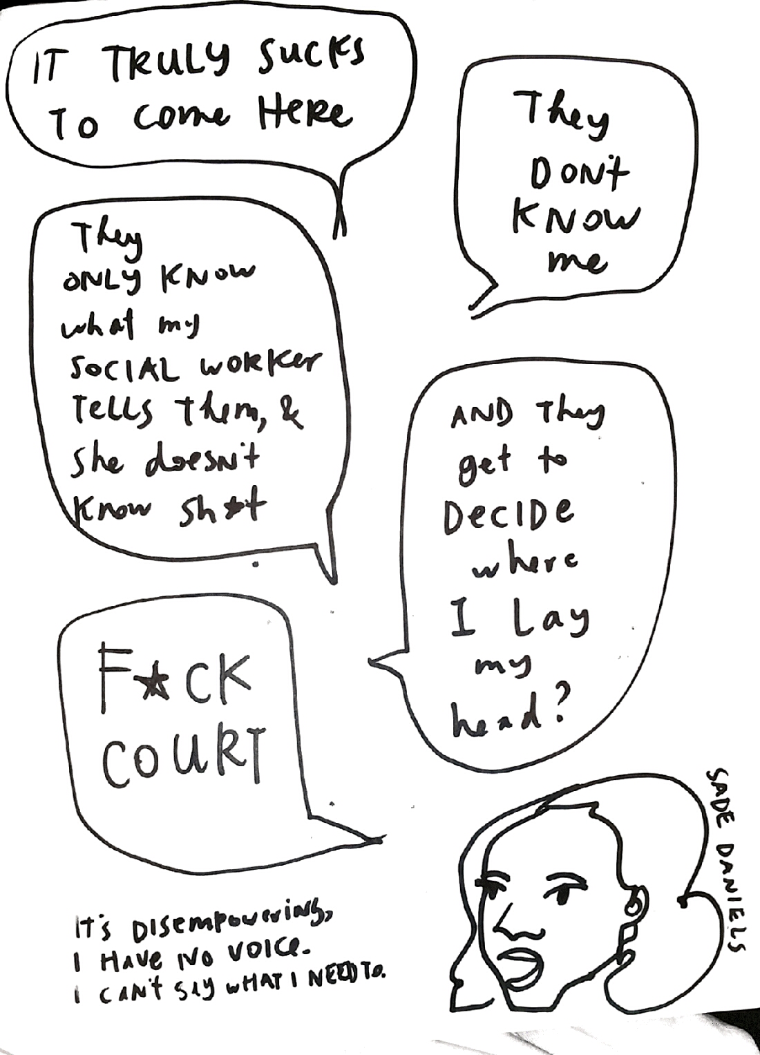 The voice of Sade Daniels, about what it feels like to go through the court system as a foster youth, at the Plenary of Beyond the Bench.