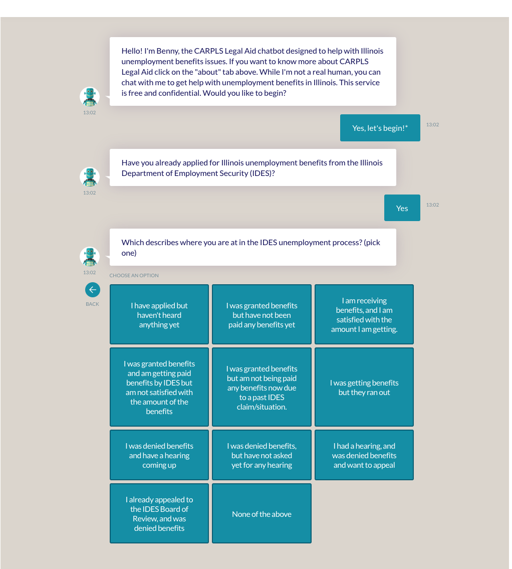 Benny, the legal aid unemployment benefits chatbot