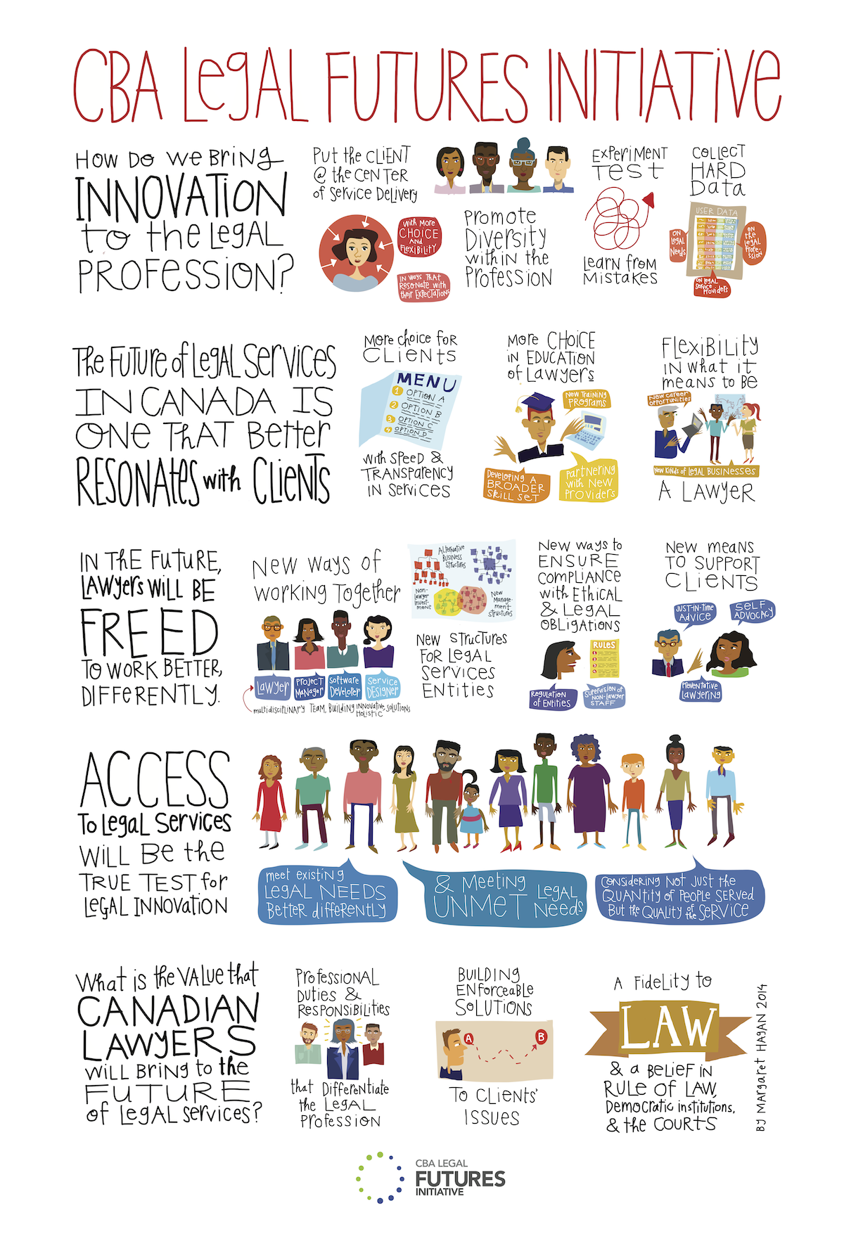 Here is a visual I made for the Canadian Bar Association, to illustrate the main takeaways of their new Legal Futures report. And then a version in French…